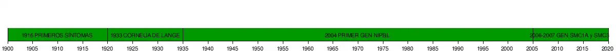 En 1933, una pediatra holandesa, la doctora Cornelia de Lange,[2] describía dos niños con rasgos similares. Hoy en día es ella a quien se le reconoce el haber descrito los síntomas que abarcan el síndrome que lleva su nombre. El síndrome también ha sido llamado Brachmann-de Lange, ya que fue el Dr. W. Brachmann quien describió en 1916 síntomas similares en un paciente.[3] Dicho síndrome es congénito, es decir que está presente desde el nacimiento. Aunque haya personas que, aunque lo tengan, no presentan todos los signos y síntomas, sino que tendrán los suficientes como para ser diagnosticados.