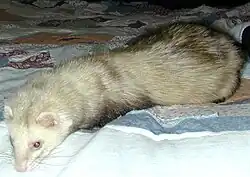 Se ha observado que los hurones pueden presentar una variante semejante al síndrome de Waardenburg, presentando una franja blanca en la región frontal de su cabeza e incluso la cabeza blanca completamente. Se realizaron pruebas para verificar la sordera (característica de la afección) y se comprobó que, aunque los hurones suelen presentar una sordera pronunciada, aquellos hurones afectados por el síndrome no reaccionaban ante efectos sonoros de consideración que el resto de hurones sin el síndrome eran capaces de reaccionar.