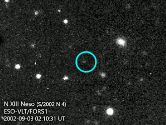 ![]() Neso (en el centro de la imagen) visto por el Very Large Telescope en septiembre de 2002. | ||