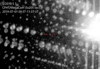 - ↑ a b c «MPEC 2021-W14 : S/2019 S 1». minorplanetcenter.net. Consultado el 16 de noviembre de 2021.