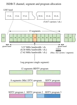 - ↑ 6 MHz/14 segmentos=428.6 kHz/segmento u 8 MHz/14 segmentos=571.4 kHz/segmento. Los 14 segmentos consisten en 13 segmentos más una banda de guarda.