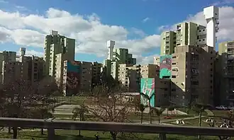 En segundo lugar, el Conjunto Habitacional La Matanza, junto a Ciudad Evita. Para dar vivienda a más de 3400 personas, se recurrió nuevamente a edificios en tira de cuatro plantas, pero agregando algunos sectores en donde solo se mantenían las dos últimas plantas, formando un paso vehicular bajo las viviendas.