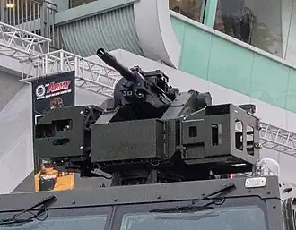 ![]() Un STK 40 AGL montado en una torreta con control remoto. | ||