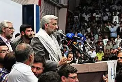 - ↑ «جلیلی در اولین همایش انتخاباتی: باید گوش شنوای تودههای مردم باشیم «Yalilí en su primera conferencia electoral: Debemos ser todo oídos para la masas del pueblo»» (en persa). 23 de mayo de 2013. Consultado el 7 de junio de 2013.