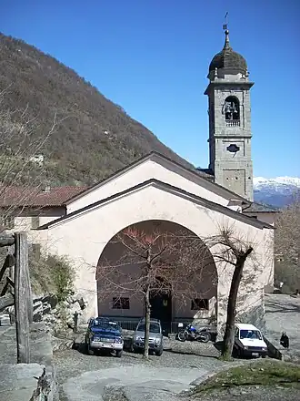 La iglesia está construida sobre terreno accidentado en el siglo XVI. Tiene una sola nave precedida de un pórtico.