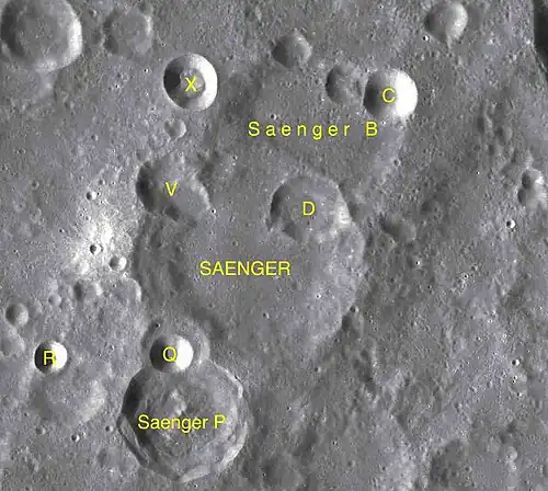 Por convención estos elementos se identifican en los mapas lunares colocando la letra en el lado del punto central del cráter más cercano a Saenger.