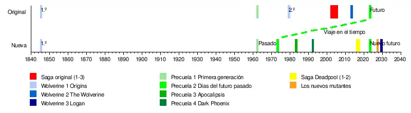 - ↑ Schedeen, Jesse (23 de marzo de 2017). «17 Reasons X-Men Movie Continuity Makes No Sense». Consultado el 6 de abril de 2021.