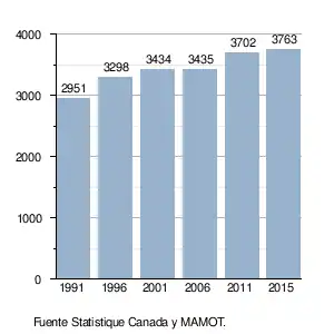 b. Statistique Canada, Profils des communautés de 2001 : Saint-André-Avellin, Ottawa. 01/02/07. Consultado el 15 de mayo de 2015. (en francés)