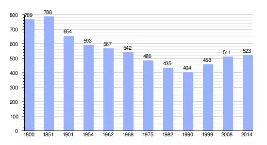 | Gráfica de evolución demográfica de Saint-Côme-du-Mont entre 1800 y 2014 |