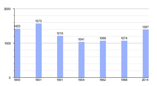Los datos demográficos contemplados en este gráfico de la comuna de Saint-Hilaire-du-Bois[5] se han cogido de 1800 a 1968 de la página francesa EHESS/Cassini.