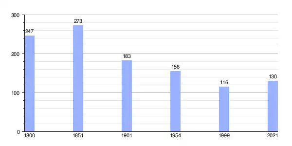 Los datos demográficos contemplados en este gráfico de la comuna de Saint-Hilaire-la-Gérard se han cogido de 1800 a 1999 de la página francesa EHESS/Cassini,[4] y los demás datos de la página del INSEE.[5]