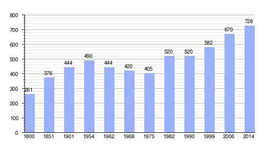 | Gráfica de evolución demográfica de Saint-Julien-le-Faucon entre 1800 y 2014 |