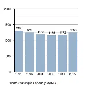 b. Statistique Canada, Profils des communautés de 2001 : Saint-Lazare-de-Bellechasse, Ottawa. 01/02/07. Consultado el 25 de junio de 2015. (en francés)