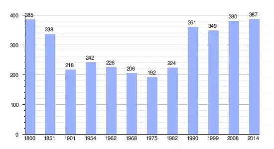 Los datos demográficos contemplados en este gráfico de la comuna de Saint-Loyer-des-Champs[4] se han cogido de 1800 a 1999 de la página francesa EHESS/Cassini, y los demás datos de la página del INSEE.[5]