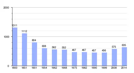 Los datos demográficos contemplados en este gráfico de la comuna de Saint-Martin-de-Sallen[4] se han cogido de 1800 a 1999 de la página francesa EHESS/Cassini, y los demás datos de la página del INSEE.[5]