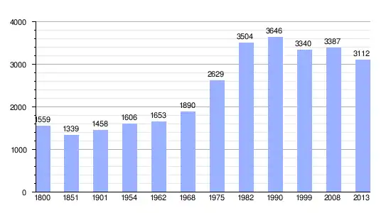 Los datos demográficos contemplados en este gráfico de la comuna de Saint-Maur[4] se han cogido de 1800 a 1999de la página francesa EHESS/Cassini, y los demás datos de la página del INSEE.[5]
