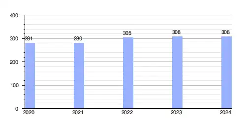 | Gráfica de evolución demográfica de Sajógalgóc entre 2020 y 2024 |