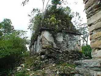 - En el lado del sur, Estructura 1,2 y 3 torre sobre el complejo. Todo tres tuvo vaulted techos, un estrechos entryway y tres cuartos interiores, y tener afinidades arquitectónicas a Palenque.[23]