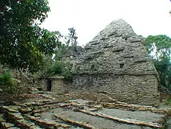 - Estructura 4 es en la segunda terraza de la parte superior. Esté construido ca. 800 C.E. El metal que cocina los utensilios han sido encontrados aquí datando de 900@–1000 C.E., haciendo los arqueólogos creen que que esto era una cocina o despensa.Dos entierros del mismo periodo han sido descubiertos cercanos dentro de una escalera modificada. Uno de los restos es hembra y estuvo enterrado con arcilla hembra figurines y cocinando utensilios.[15]