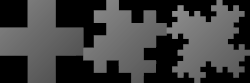 Islas Anti-isla (anticopo de nieve de Koch), iteraciones 0-4[4] ![]() Anti-isla: la simetría del generador da como resultado una imagen reflejada de la isla [1] La misma isla que la primera formada a partir de un generador diferente ,[7] que forma 2 triángulos rectángulos con longitudes de lado en relación: 1:2:√5[8][4] ![]() Isla cuadrada formada usando curvas con un generador diferente[5] |
