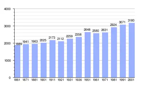 | Gráfica de evolución demográfica de Sale Marasino entre 1861 y 2001 |
