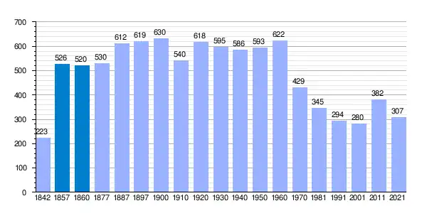 | Gráfica de evolución demográfica de Salinas de Pisuerga[3] entre 1842 y 2021 |