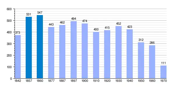 | Gráfica de evolución demográfica de Salinillas de Buradó[11] entre 1842 y 1970 |