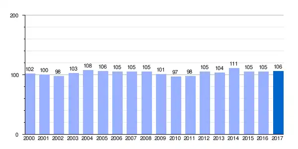 | Gráfica de evolución demográfica de Salinillas de Buradón[13] entre 2000 y 2017 |