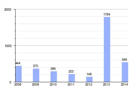 | Gráfica de evolución de la deuda viva del ayuntamiento entre 2008 y 2014 |