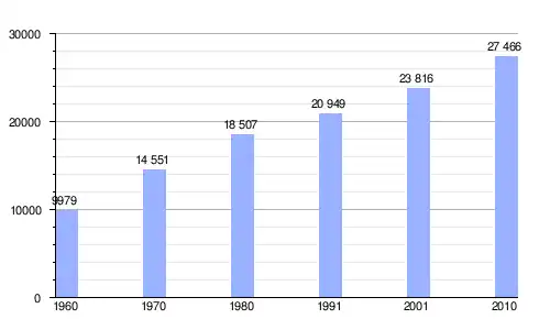 | Gráfica de evolución demográfica de Salto entre 1960 y 2010 |
