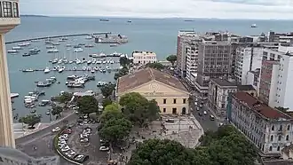 El Mercado Modelo de Salvador de Bahía, visto desde el Elevador Lacerda en la Ciudad Alta, con la vista de la imponente Bahía de Todos los Santos, que dio nombre a la ciudad.La iglesia de Nuestro señor de Bonfim: iglesia estilo rococó con decoración interior neoclásica. La imagen de Nuestro Señor de Bonfim es la más venerada de Brasil. La Fiesta de Nuestro Señor de Bonfim (Festa de Nosso Senhor do Bonfim) es la más importante de la ciudad tras el Carnaval.