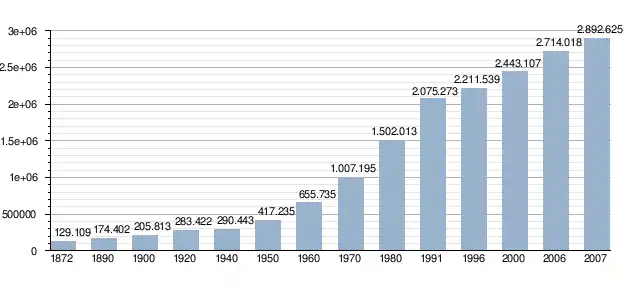 Para 1991 la población ya había alcanzado la cantidad de 2,08 millones de habitantes.