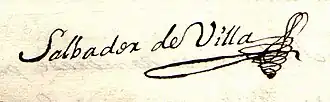 Villa era un experimento técnico de aquellos tiempos, había intervenido en la construcción de las Casas de Moneda de México y Lima. Hizo su testamento el 4 de enero de 1764, anulando el de 12 de julio de 1758, dictado en Lima ante Juan Bautista Thenorio y Palacio. Consta que Salvador de Villa era natural de la ciudad de Zaragoza del Reino de Aragón, e hijo legítimo de don Francisco de Villa y de doña Isabel de Alcaides, y que nombró por sus albaceas a don Luis Cabello y Vicente Gareca.