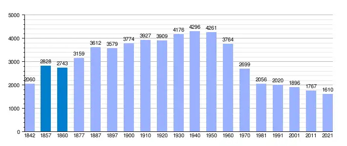 | Gráfica de evolución demográfica de Salvatierra de los Barros[4] entre 1842 y 2021 |