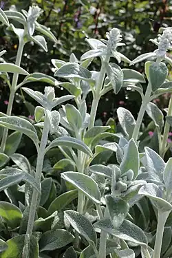 Es una hierba pelosa, perenne, con pelos densamente adpresos, de hasta 60 cm. Hojas basales oblongas con base acorazonada o redondeada, dentadas, de fieltro gris por debajo, pecioladas; hojas caulinares más o menos sentadas. Flores azul violeta, raramente rosas o blancas, de 8-12 mm, en inflorescencia densa con verticilos de 2-6 flores; brácteas ovadas, violetas, imbricadas antes de abrirse.