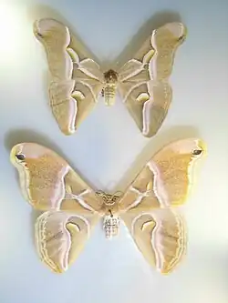 abajo: Samia canningi (hembra), arriba: Samia cynthia (hembra) | ||