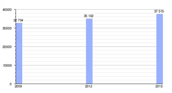 | Gráfica de evolución demográfica de San-Yago entre 2009 y 2015 |