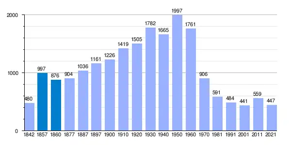 | Gráfica de evolución demográfica de San Bartolomé de las Abiertas[2] entre 1842 y 2021 |