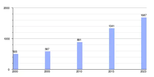 | Gráfica de evolución demográfica de San Cibrao das Viñas (villa) entre 2000 y 2023 |