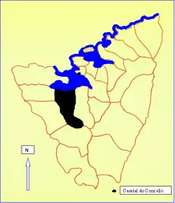 - ↑ Miralbes Bedera, Rosario; de Torres Luna, María Pilar; Rodríguez Martínez-Conde, Rafael (1979). «Ortigueira». Mapa de límites de las parroquias de Galicia. Santiago de Compostela: Imprenta Paredes. p. 19. ISBN 8460014142.