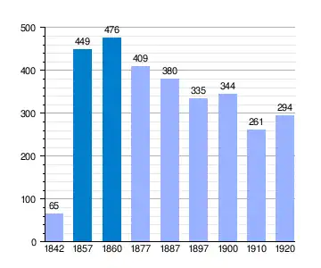 | Gráfica de evolución demográfica de San Clemente del Valle[1] entre 1842 y 1920 |