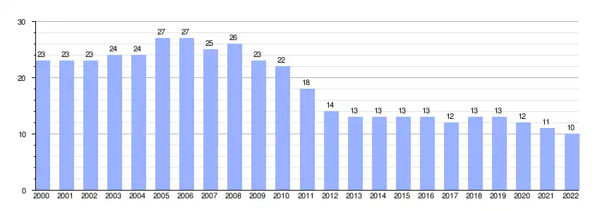 | Gráfica de evolución demográfica de San Cristóbal entre 2000 y 2022 |