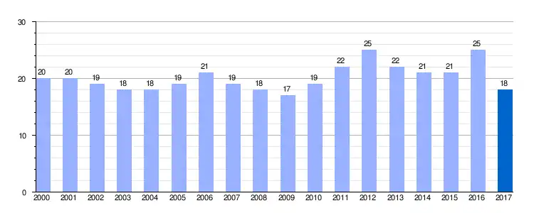 | Gráfica de evolución demográfica de San Cristóbal de Almendres entre 2000 y 2017 |