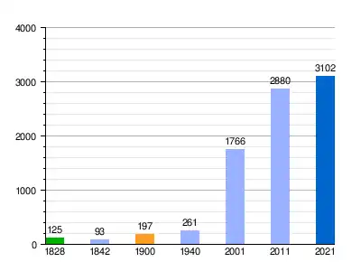 | Gráfica de evolución demográfica de San Cristóbal de Segovia[22] entre 1828 y 2021 |