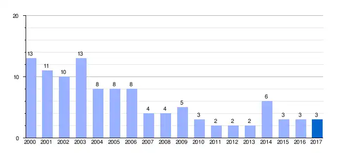 | Gráfica de evolución demográfica de San Cristóbal de los Mochuelos[3] entre 2000 y 2017 |