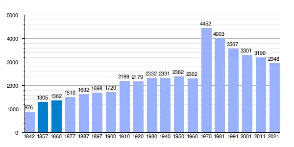 | Gráfica de evolución demográfica de San Esteban de Gormaz[10] entre 1842 y 2021 |