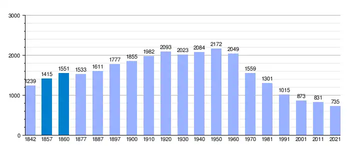 | Gráfica de evolución demográfica de San Esteban del Valle[14] entre 1842 y 2021 |