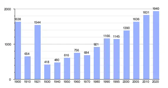 | Gráfica de evolución demográfica de San Francisco entre 1900 y 2020 |