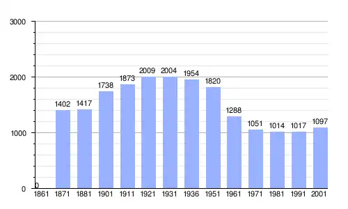 | Gráfica de evolución demográfica de San Germano dei Berici entre 1861 y 2001 |