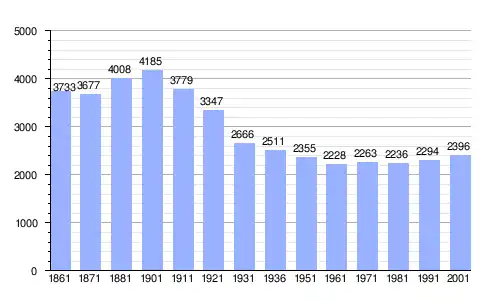 | Gráfica de evolución demográfica de San Giorgio Canavese entre 1861 y 2001 |